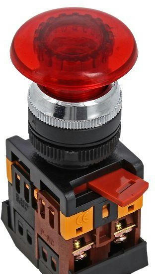 Кнопка AELA-22 "Грибок" NO+NC 220В с подсветкой красн. EKF pbn-aela-1r-220